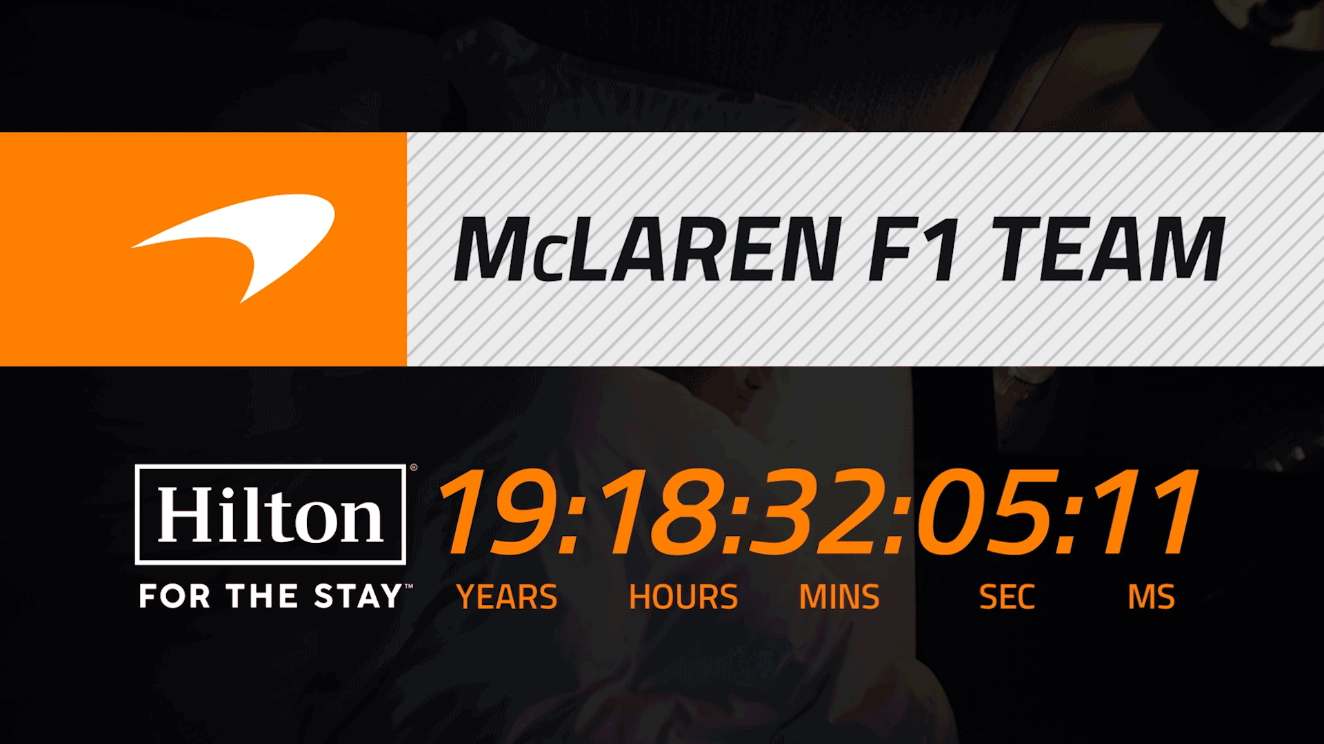 We highlighted the duration of the Hilton x McLaren F1 partnership using a pit stop clock-inspired graphic.